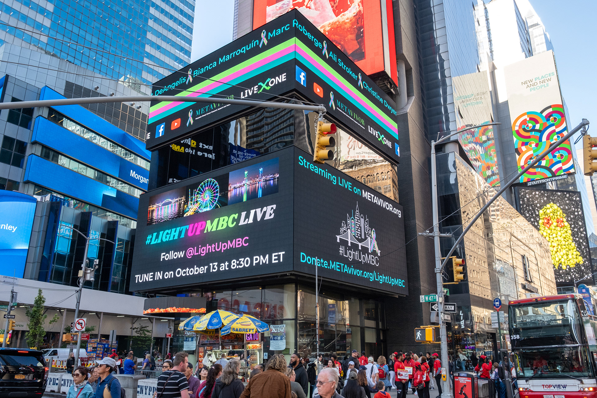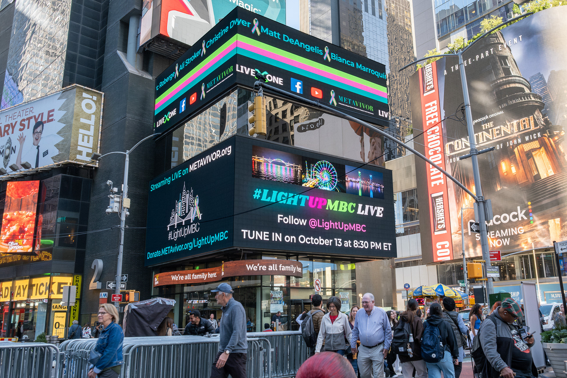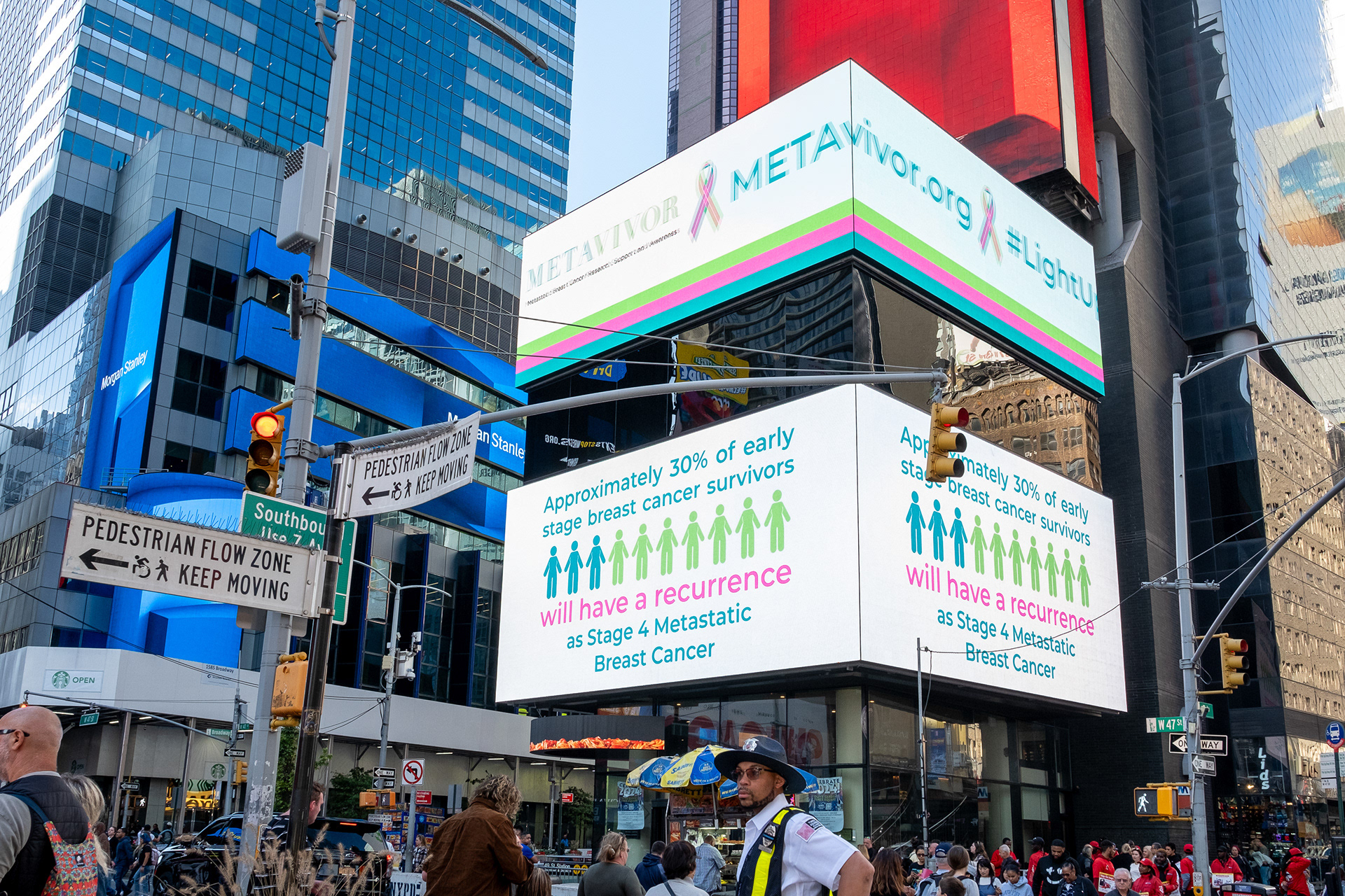 Since 2023, I managed the Times Square 10-second spot ad for #LightUpMBC, a campaign to educate, raise funds, and shine a light on the critical need for Stage 4 Metastatic Breast Cancer research. #LightUpMBC Live is a virtual event filled with incredible patient stories, celebrity guests, and hope that research will light the way to a cancer-free future. This ad features two full days before National Metastatic Breast Cancer Awareness Day.